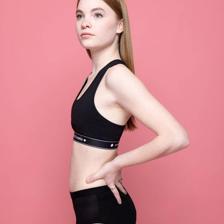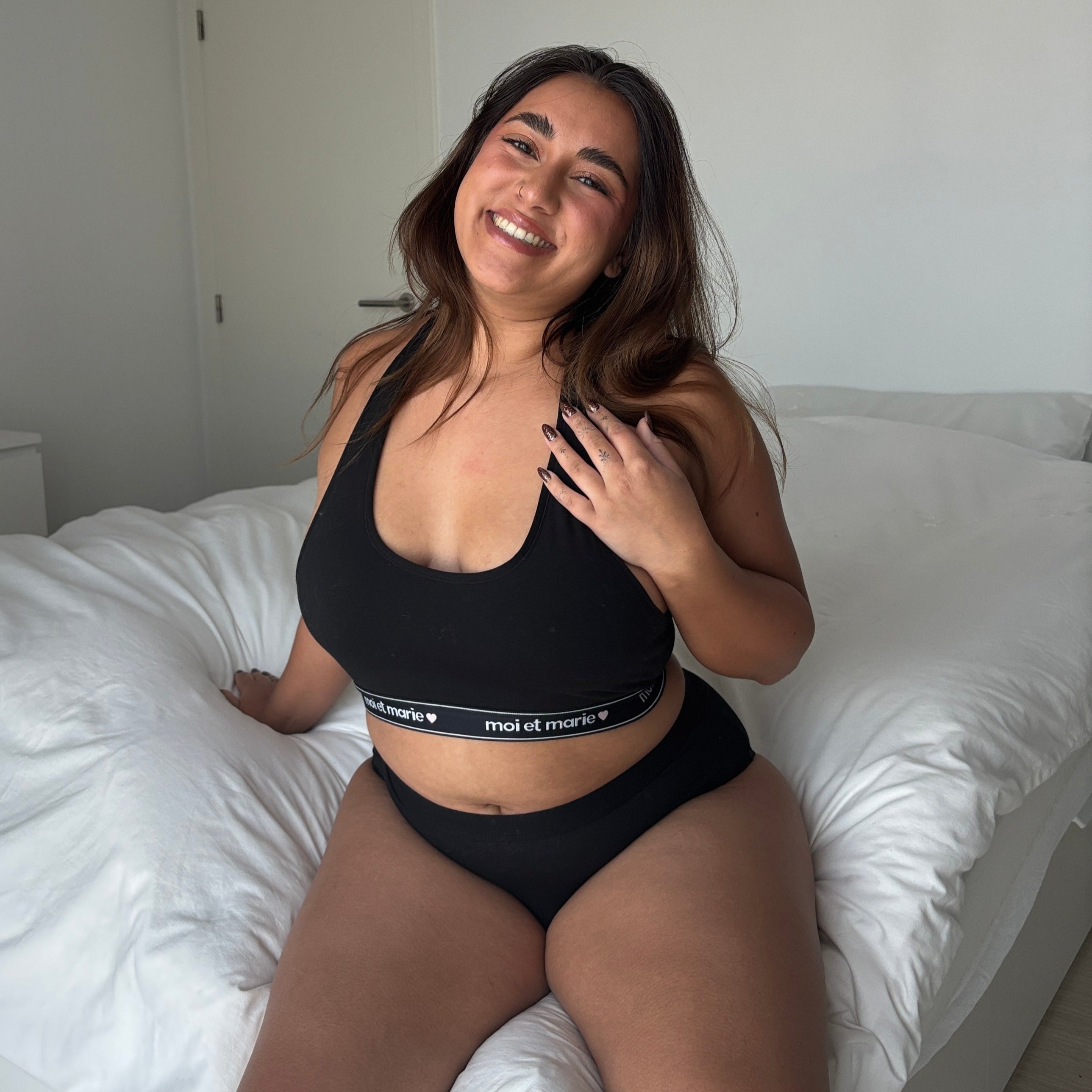 Moi et Marie® to ekspert w dziedzinie trwałych majtek menstruacyjnych, strojów kąpielowych i bikini dla nastoletnich dziewcząt i kobiet. Każdy model zawiera cztery unikalne warstwy, które pochłaniają wydzielinę miesiączkową, zapewniając jednocześnie suchość. Dzięki tym trwałym majtkom nie potrzebujesz już wkładek higienicznych, tamponów ani podpasek: są one zarówno przyjazne dla środowiska, jak i ekonomiczne. Co więcej, są miękkie, wygodne i hipoalergiczne. Są również odpowiednie w przypadku niewielkiego osłabienia pęcherza.