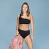 passar perfekt med vår WAVE badbyxa med låg midja, vår ISLA badbyxa med hög midja eller våra ZAYA menstruationsbadshorts.